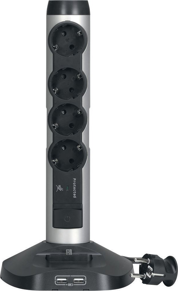 Πολύπριζο πύργος από αλουμίνιο με θύρες φόρτισης USB Wi-Fi access piont & repeater και προστατευτικό υπέρτασης.