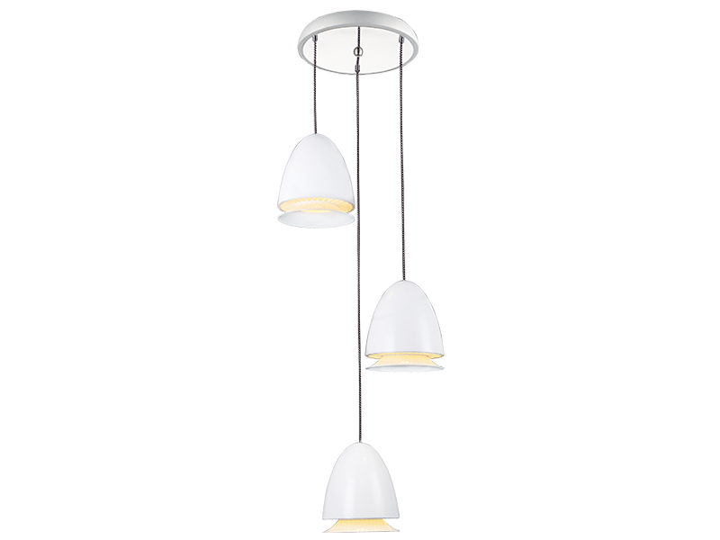 Τρίφωτο φωτιστικό κρεμαστόσε λευκό χρώμα. Αφαιρείται το κάτω μέρος του φωτιστικού.  Διαστάσεις cm. Λαμπτήρας Ε27 3 X Max 26W ECO.